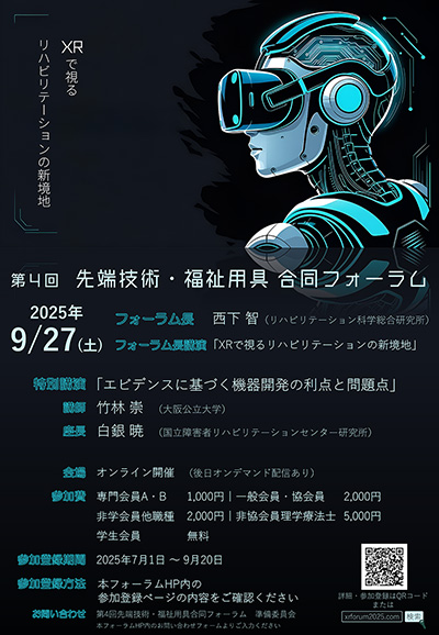 2025年9月27日(土)に開催された、第4回先端技術・福祉用具合同フォーラムの「XR技術を活用したリハビリテーション機器の新境地」指定講演にて、埼玉よりい病院の猪岡弘行先生によるRehaVRの研究が紹介されました。