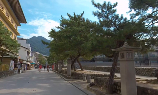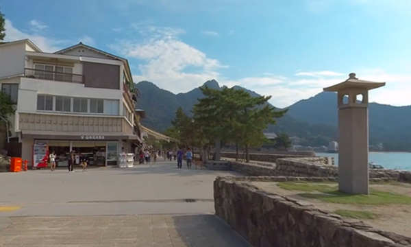 こちらのコンテンツでは、お店の外観や石碑、対岸の広島の街などを眺めながら、宮島桟橋からお土産通りのある、宮島の海岸沿いを歩きます。