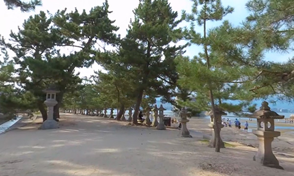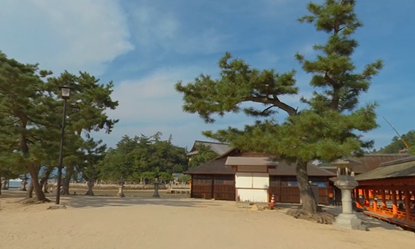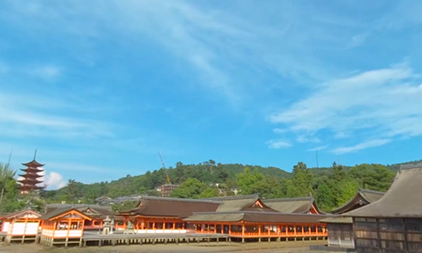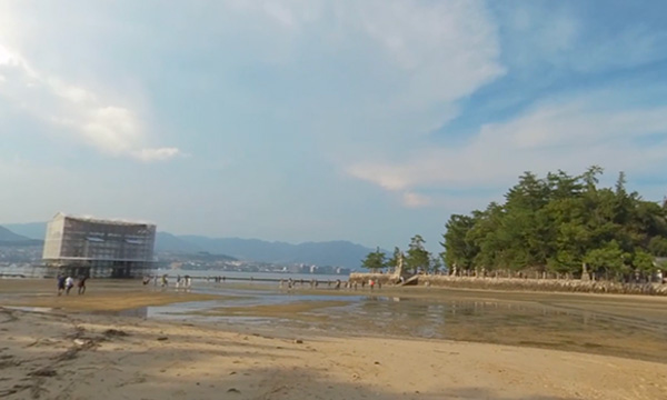 こちらのコンテンツでは、干潮時の厳島神社の風景を眺めながら、海上に建てられた大鳥居周辺を歩きます。